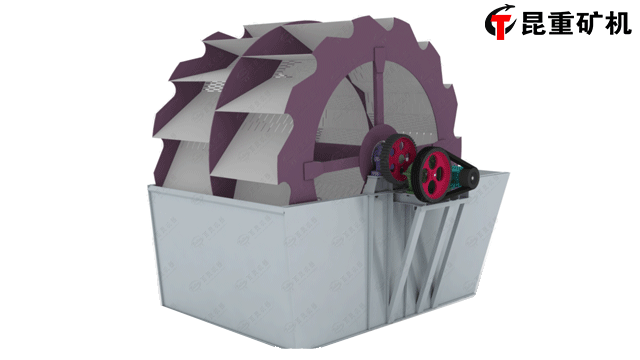 XSD系列葉輪洗砂機(jī)工作時(shí),電機(jī)通過三角帶、減速機(jī)、齒輪減速后帶動(dòng)葉輪緩慢轉(zhuǎn)動(dòng),砂石有給料槽進(jìn)入洗槽中,在葉輪的帶動(dòng)下翻轉(zhuǎn)、攪拌、淘洗,并互相研磨,除去覆蓋砂石表面的雜質(zhì),同時(shí)破壞包覆砂粒的水汽層,以利于脫水;同時(shí)加水,形成強(qiáng)大水流,及時(shí)將雜質(zhì)及比重小的異物帶走,并從溢出口洗槽排出,完成清洗作用。干凈的砂石由葉片帶走,砂石從旋轉(zhuǎn)的葉輪倒入出料槽,完成砂石的清洗作業(yè)。